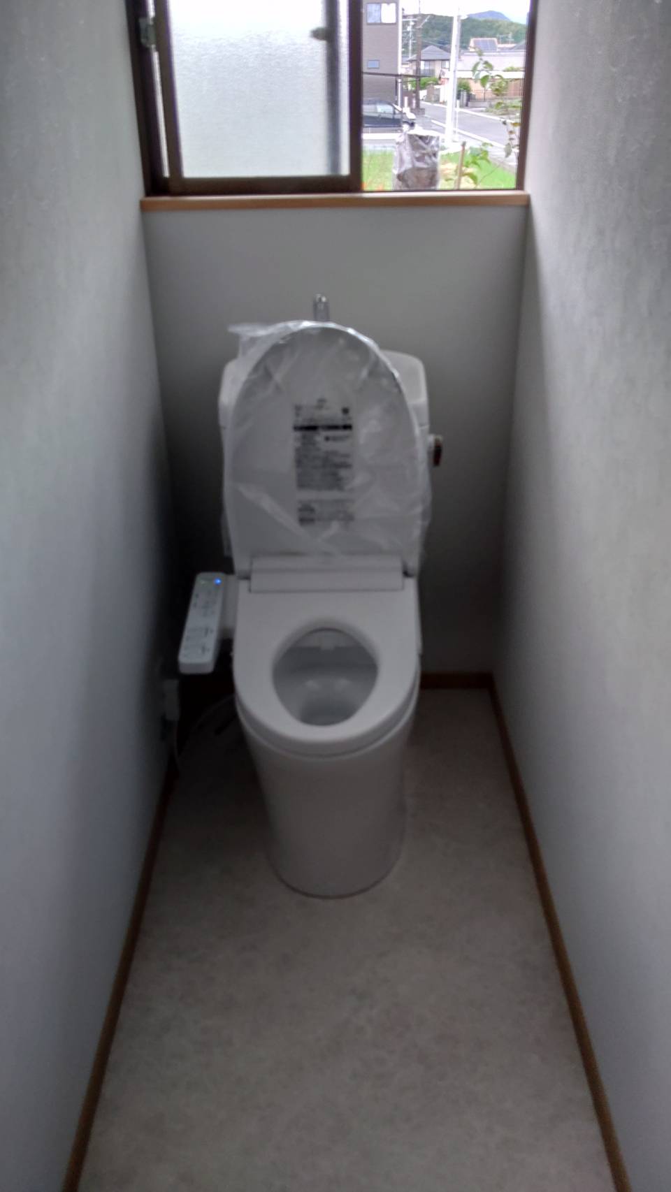 今日は、先週解体した和式トイレのクロスはりが、できたので、トイレを付けました。