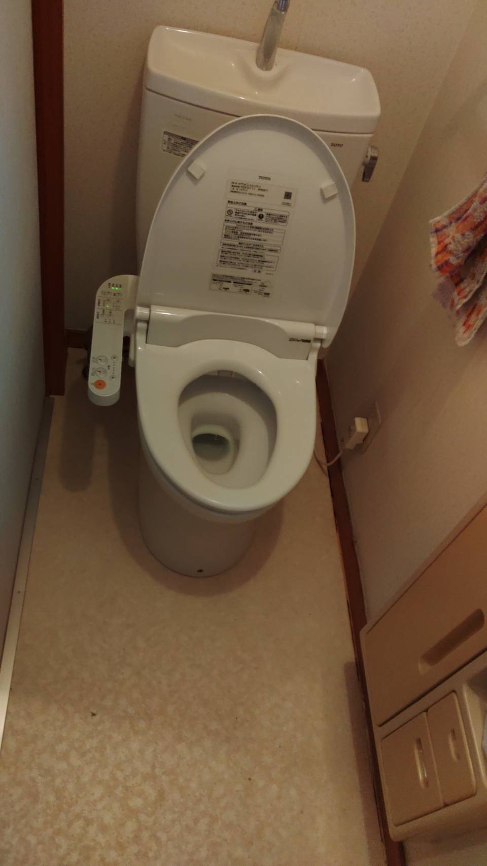 今日は、トイレでなくトイレの床を交換をする為に、トイレの脱着をしました。 一度外したトイレをつけるのは、水漏れの可能性が上がるのでいつもより沢山何回も水を流して確認しました。