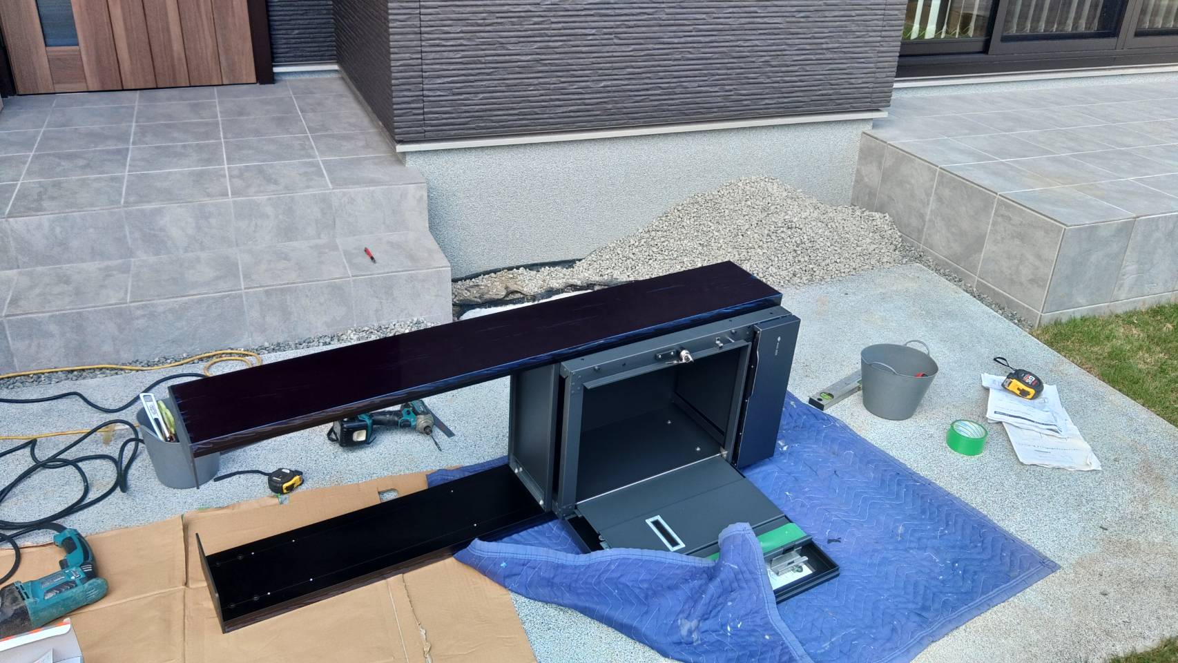 仲間の会社から頼まれてやりました。 はじめて扱う商品なので、 説明書を読むのが面倒でしたが簡単にできました。 留守の時の宅配業者用のハンコや領収書を入れる所もあるポストで高機能なポストでした。 勉強になりました。
