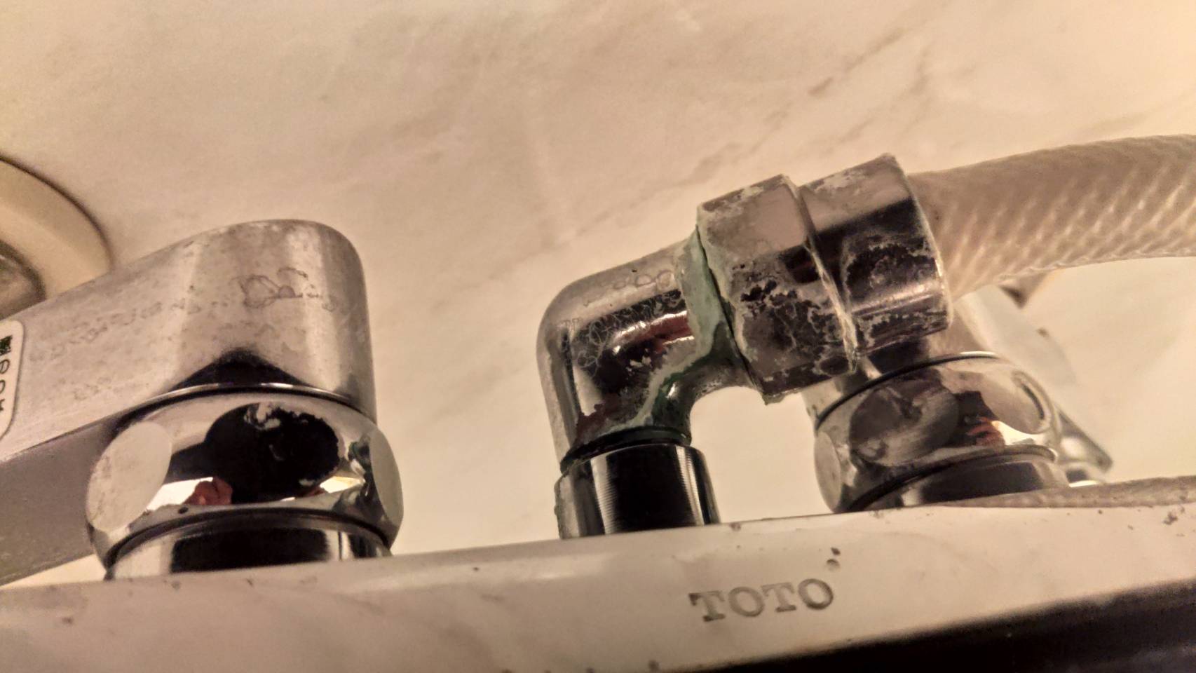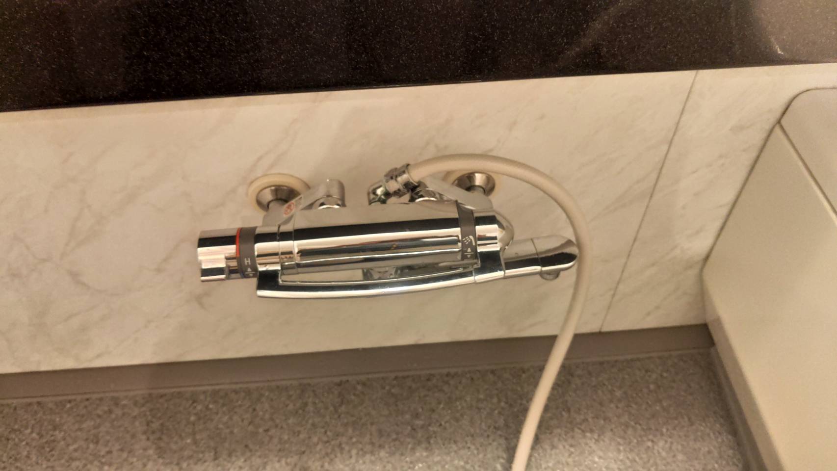 お風呂のシャワー水栓を交換しました。 シャワーの根元から水漏れするとの事で依頼を受けました。 シャワーとカランのレバーの動きも固くなっていて10年以上使っているので交換しました。