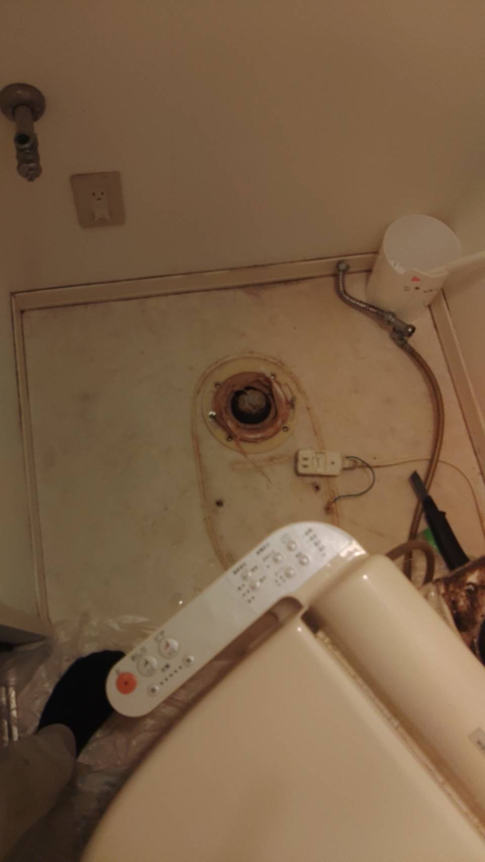 トイレの詰まりの修理をしました。 最初はポンプでバンバンやってみましたが、全く良くならないのでトイレを外してみました。