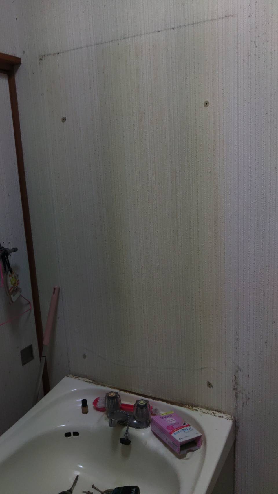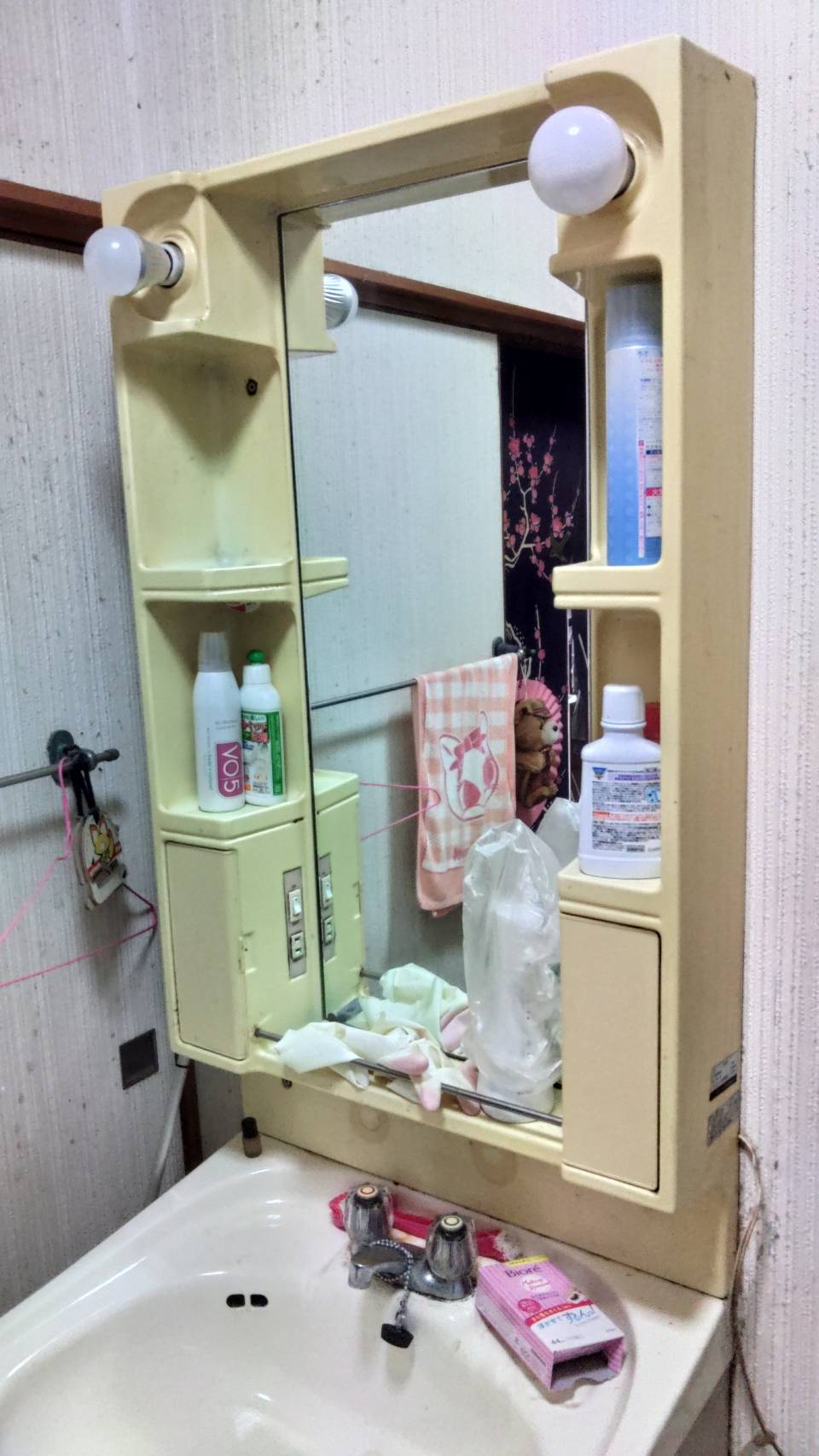 洗面台のミラーキャビネットの交換をしました。 コンセントが熱くなるから見て欲しいという依頼でしたが、もお20年くらい使っているので交換を薦めました。