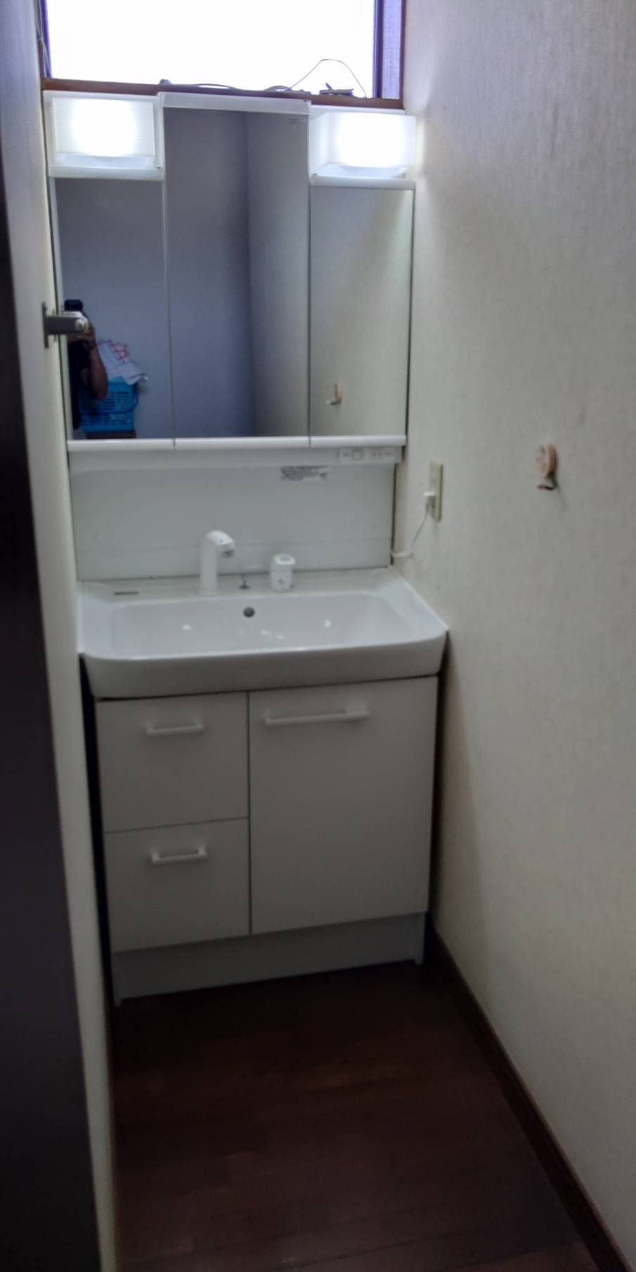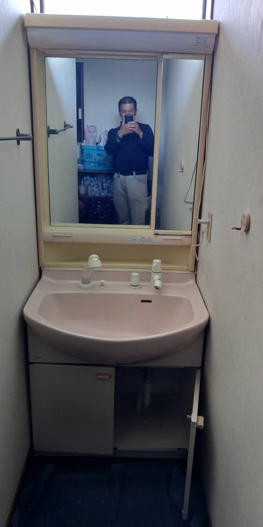 洗面台の交換をしました。 両側が壁ピッタリだったので出し入れする時に壁のクロスを引っかいてしまわないかとヒヤヒヤやりました。 なんとか無事に交換できました。