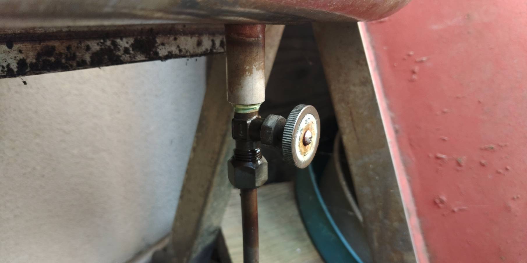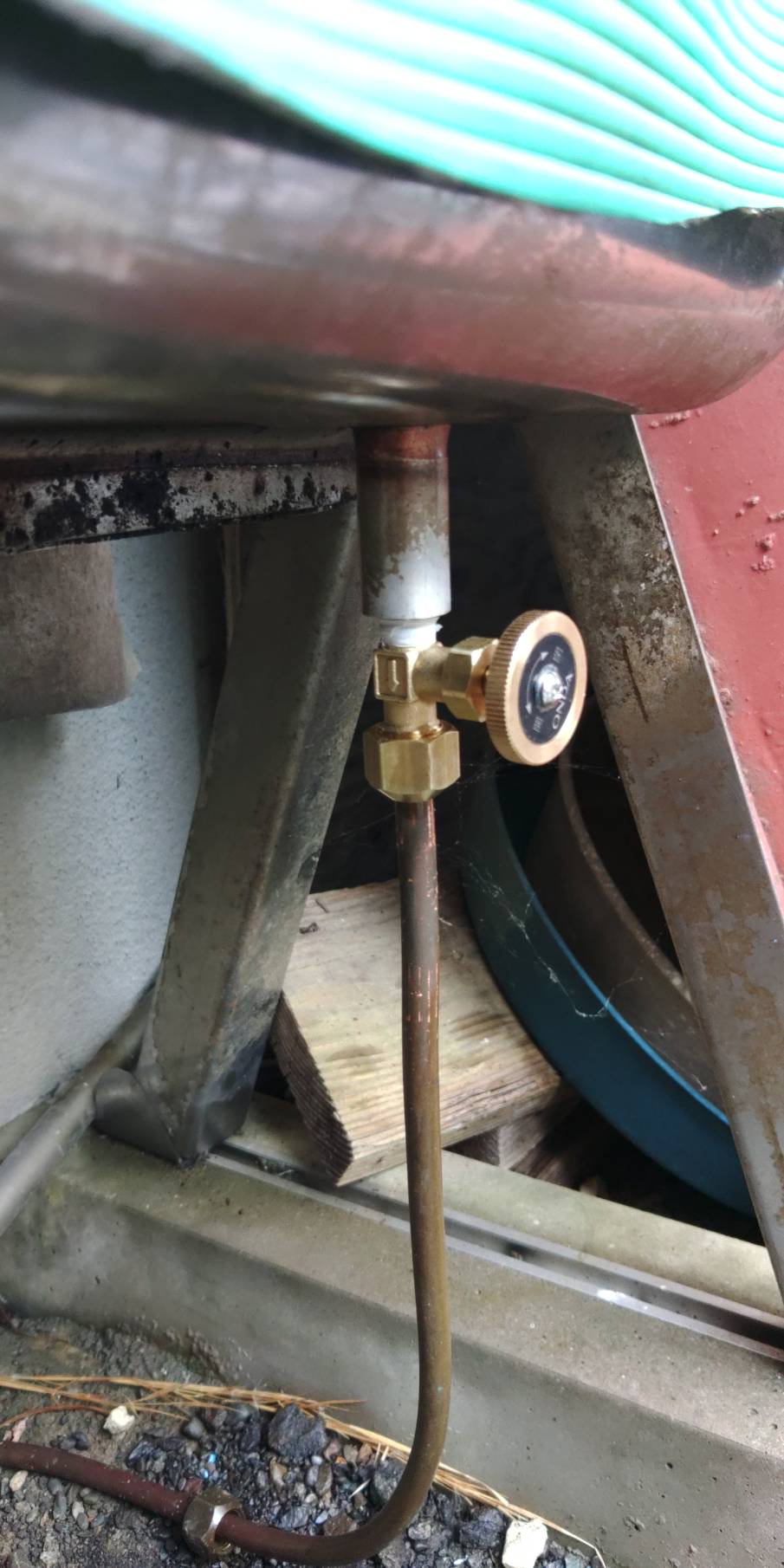 灯油ボイラーのタンクのバルブを交換しました。 バルブから灯油が漏れています、お客様がメーカーに問い合わせたらタンクごと交換だと言われたらしく、現地を確認したらバルブから漏れてたのでバルブのみの交換にしました。