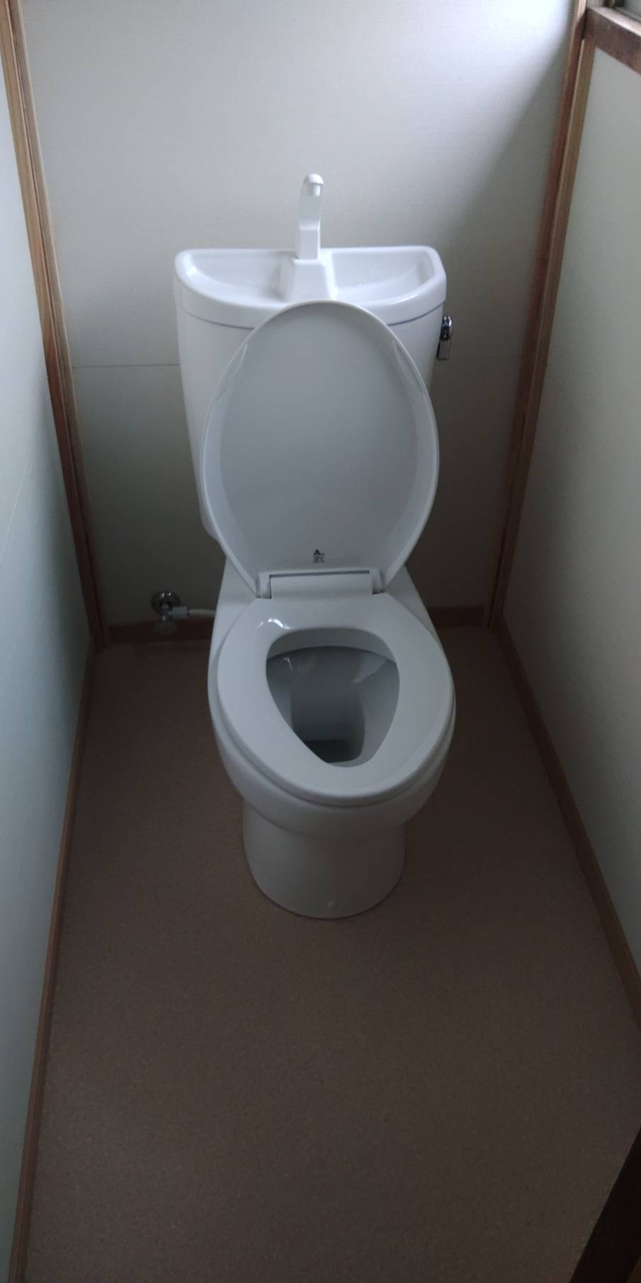 大工さんにキレイに床を作ってもらった後にトイレ工事をしました。 壁の中にスジカイ(斜めの柱)が有り給水バルブをもお少し上に付けたかったけど良しとしよう! あとは、問題なくスムーズにやれました。