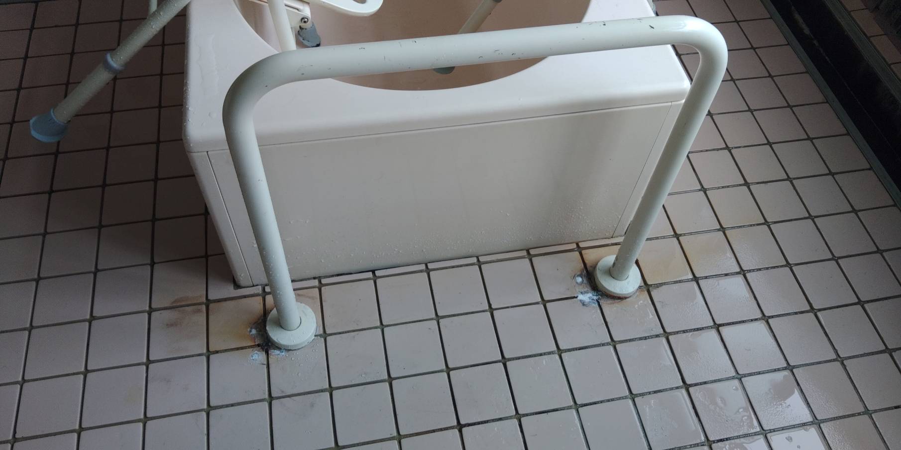 今日は、グラグラになってしまったお風呂の手摺を付け直しました。