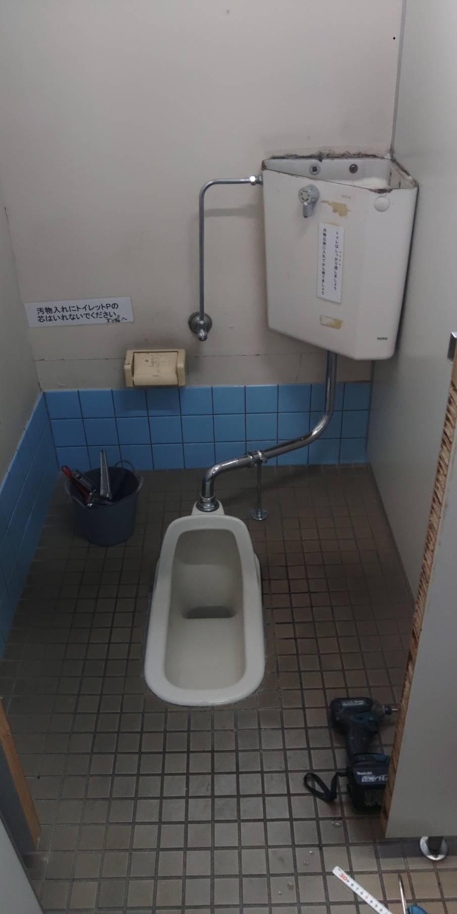 今回は、和式トイレを解体して配管仕込みをして、コンクリートを打ちました。