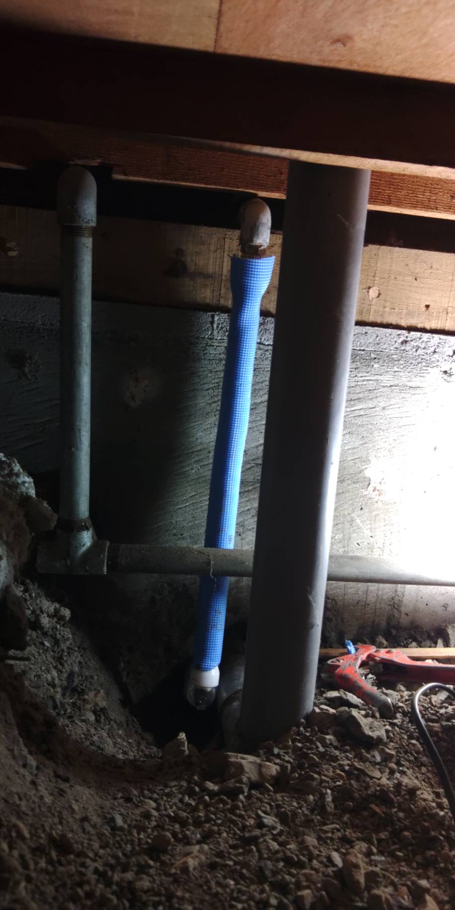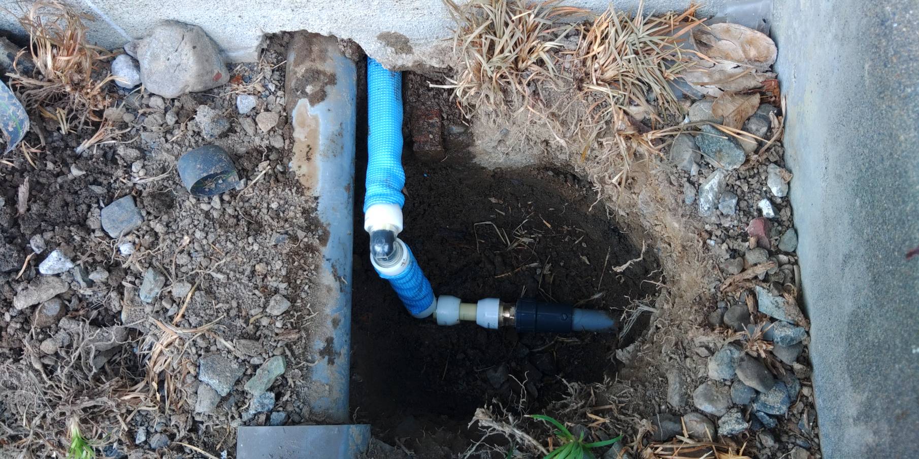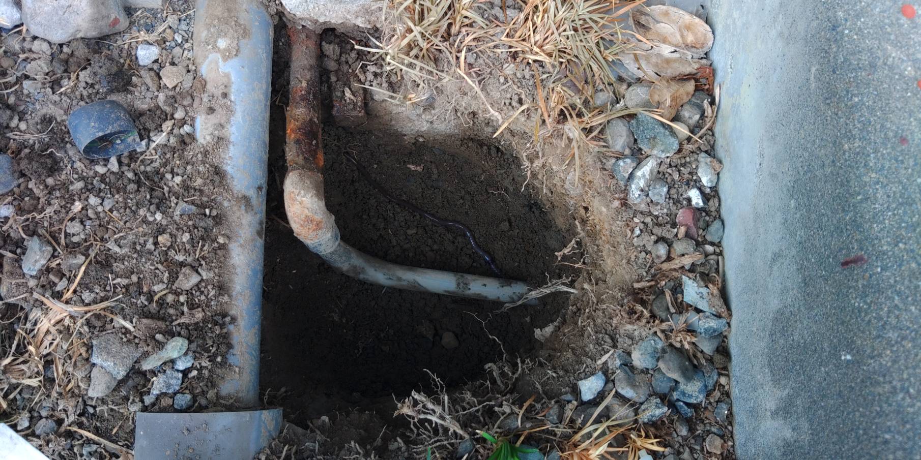 地面の中のパイプが錆びて水漏れしてしまったので、直しました。