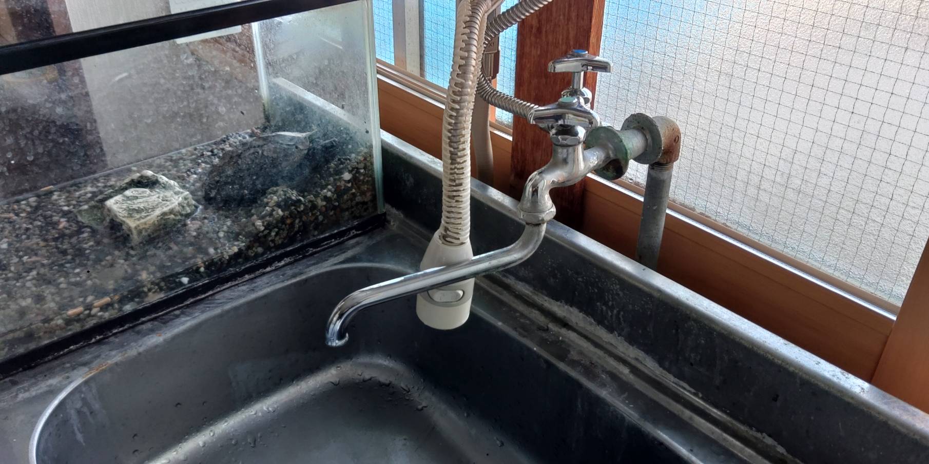 配管が固定されてなくグラグラしてたのでキッチンをちょっとずらして固定してから水栓交換しました。