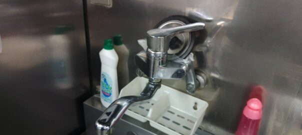 施設の厨房の混合水栓を変えました。 レバーの中が折れておかしな角度まで回ってしまうようになってしまったので交換しました。 一応上手くやれば使えてましたが、新しくなったので普通に使えるようになって良かったです。